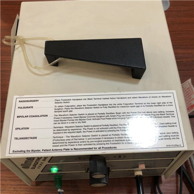 高频电刀是由主机和电刀刀柄、病人极板、双极镊、脚踏开关等附件组成的